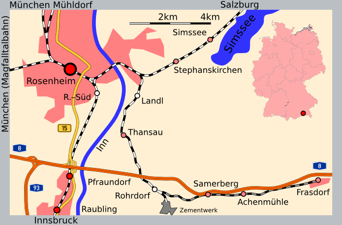 In der amtlichen Beschreibung werden Landl, Thansau, Rohrdorf und Achenmühle als Haltestellen genannt. Einziger Bahnhof ist Frasdorf, wo die Strecke endet.